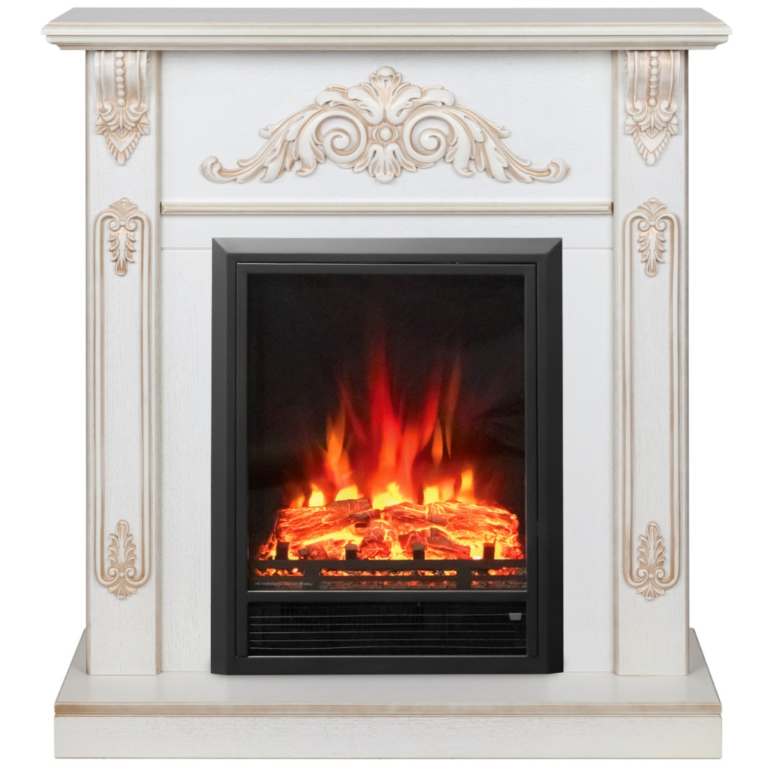 Обрамление Anita в цвете "белый дуб" с патиной. В комплекте используется электрический очаг Eugene с реалистичным эффектом визуализации пламени.