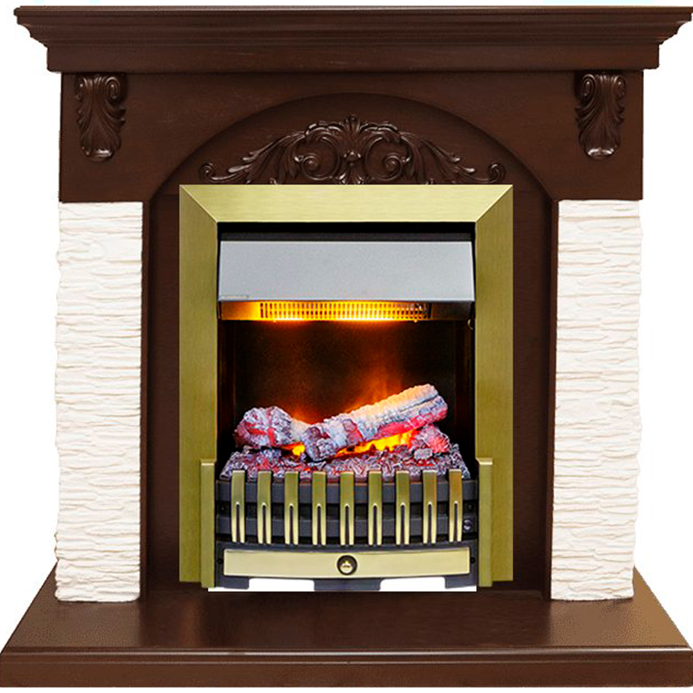 Каминокомплект Dimplex Bern Сланец мелкий белый / Темный дуб с очагом Danville Antique Brass FB2