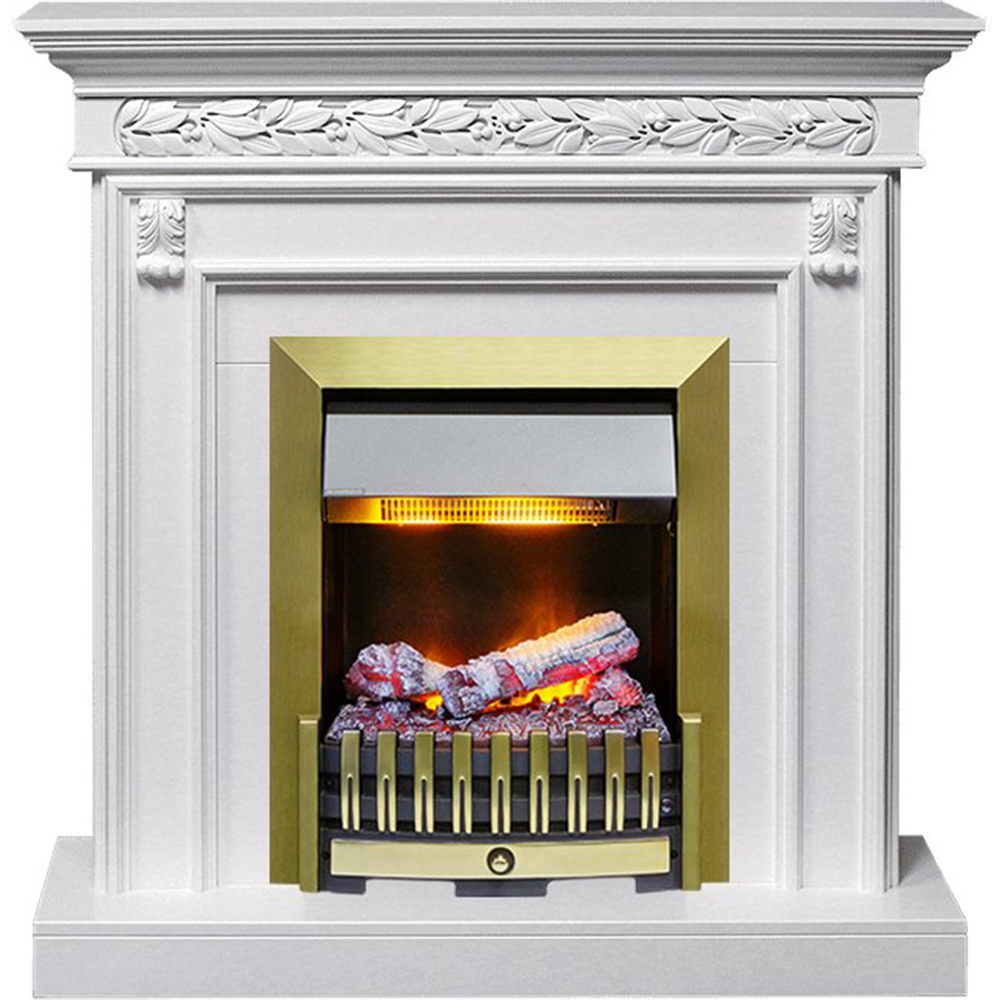 Каминокомплект Dimplex Valletta - Белый (Ширина 1040 мм) с очагом Danville Antique Brass FB2