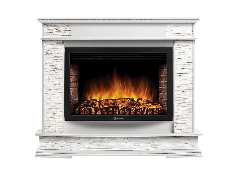 Каминокомплект Electrolux Scala 25 с очагом EFP/P-2520LS камень сланец скалистый белый, шпон белый дуб