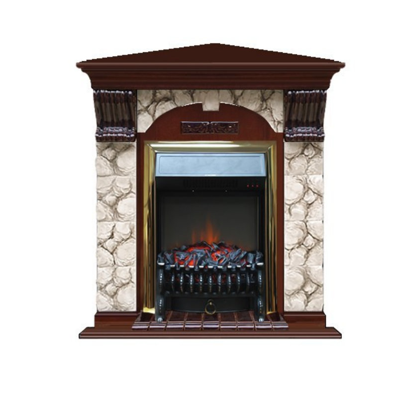 Каминокомплект Glenrich Арочный (угловой) Fobos brass камень Алтай, шпон красное дерево