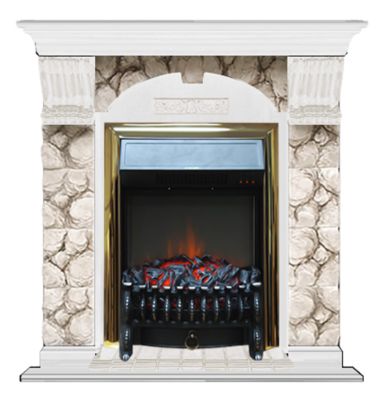 Каминокомплект Glenrich Арочный (угловой) Fobos brass камень Карелия, шпон белый - это идеальный выбор для тех, кто хочет создать уютную атмосферу в своем доме.