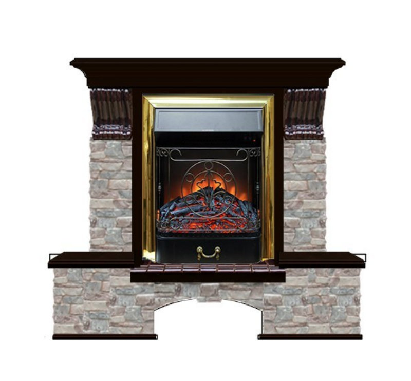 Каминокомплект Glenrich Бостон К Грот цветной (Magestic brass) венге