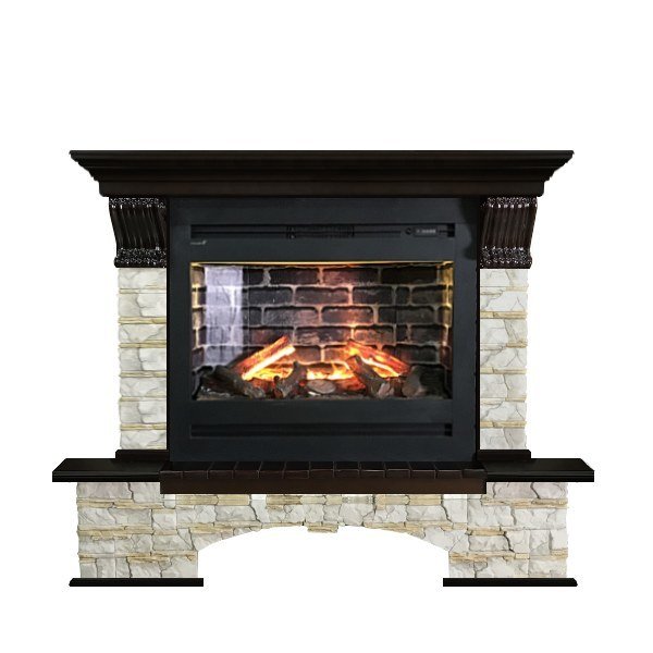 Комплект включает в себя каминную облицовку, каминную топку, декоративные элементы и горючий материал. Все компоненты совместимы между собой, что обеспечивает быструю и простую установку.
