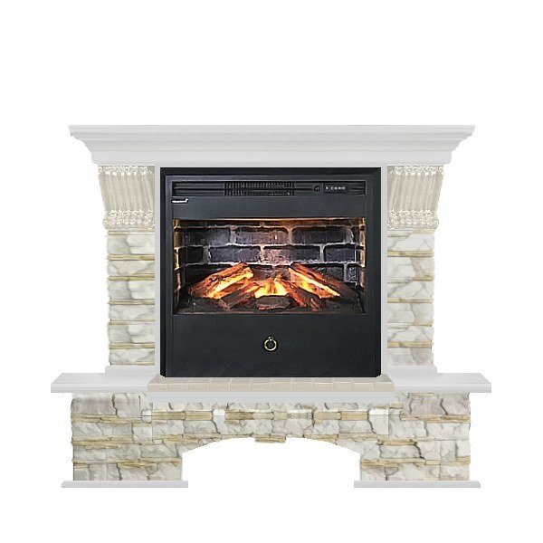 Каминокомплект Glenrich Бостон Samba 3D белый шпон