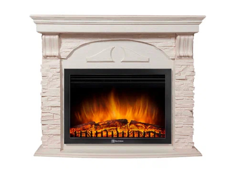 Каминокомплект угловой Electrolux Torre 25U с очагом EFP/P-2520LS камень белый, шпон белёный дуб
