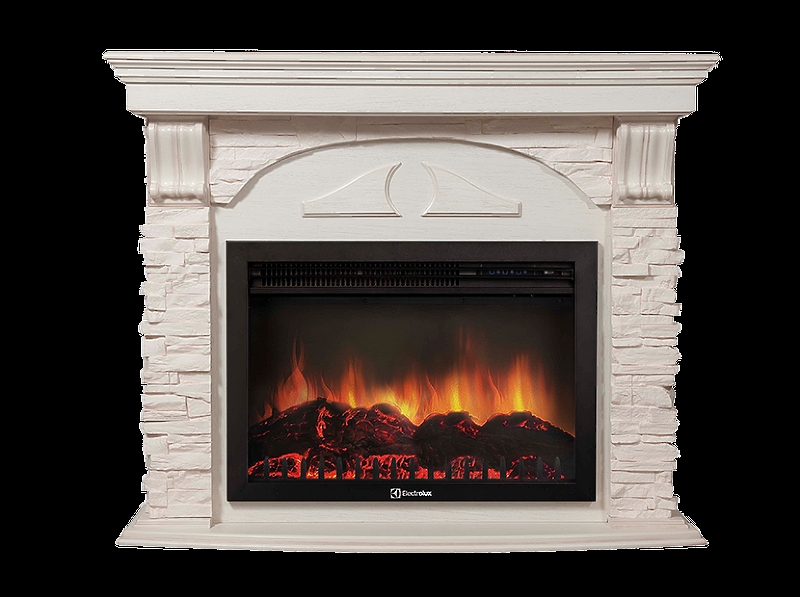 Портал Firelight Torre 25S камень белый, шпон белёный дуб
